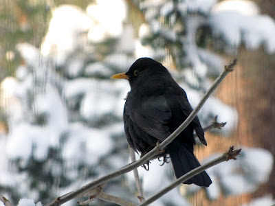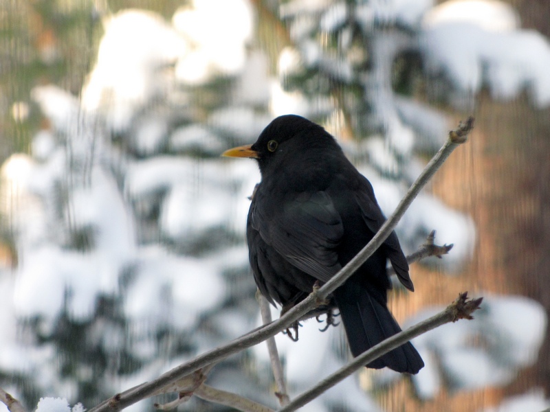 Mięsny ochłap wywieszony za okno przyciągnął sikory...