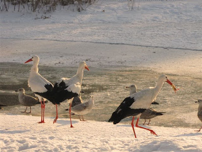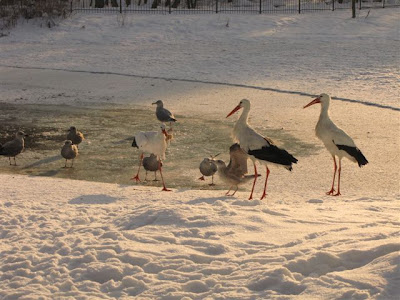 A tutaj kilka zdjęć nietypowych. Zimowe karmienie bocianów w ZOO...